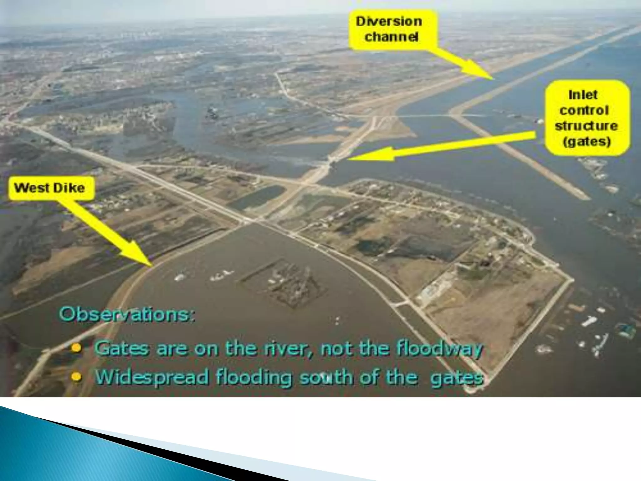 Flood control refers to methods used to reduce or prevent flood damage. Some key flood control methods include dams, diversion canals, self-closing flood barriers, river defences, and coastal defences. Dams are designed to control floods by reserving space in reservoirs to store floodwaters. Diversion canals redirect excess water to less impacted areas. Self-closing barriers deploy automatically during floods to protect areas. River defences like levees and weirs hold back high water. Coastal flooding is addressed with structures like sea walls.