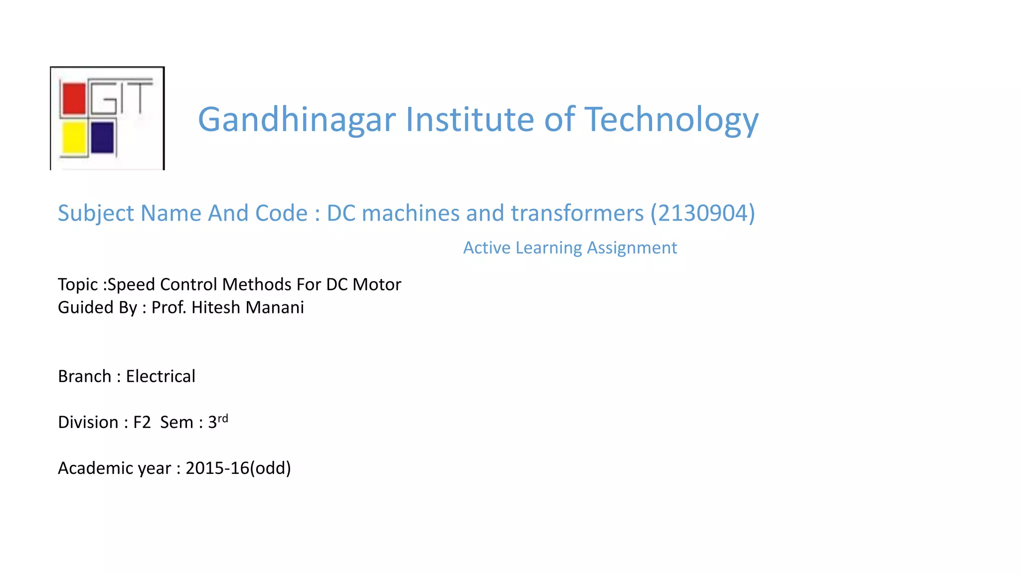 The document discusses speed control methods for DC motors, focusing on shunt and series motors. It outlines various methods including flux control, armature control, multiple voltage control, and the Ward-Leonard system for precise speed regulation. Additionally, it explains techniques for series motor speed control like field divertor, tapped field control, and series-parallel control for efficient operation in different speed scenarios.