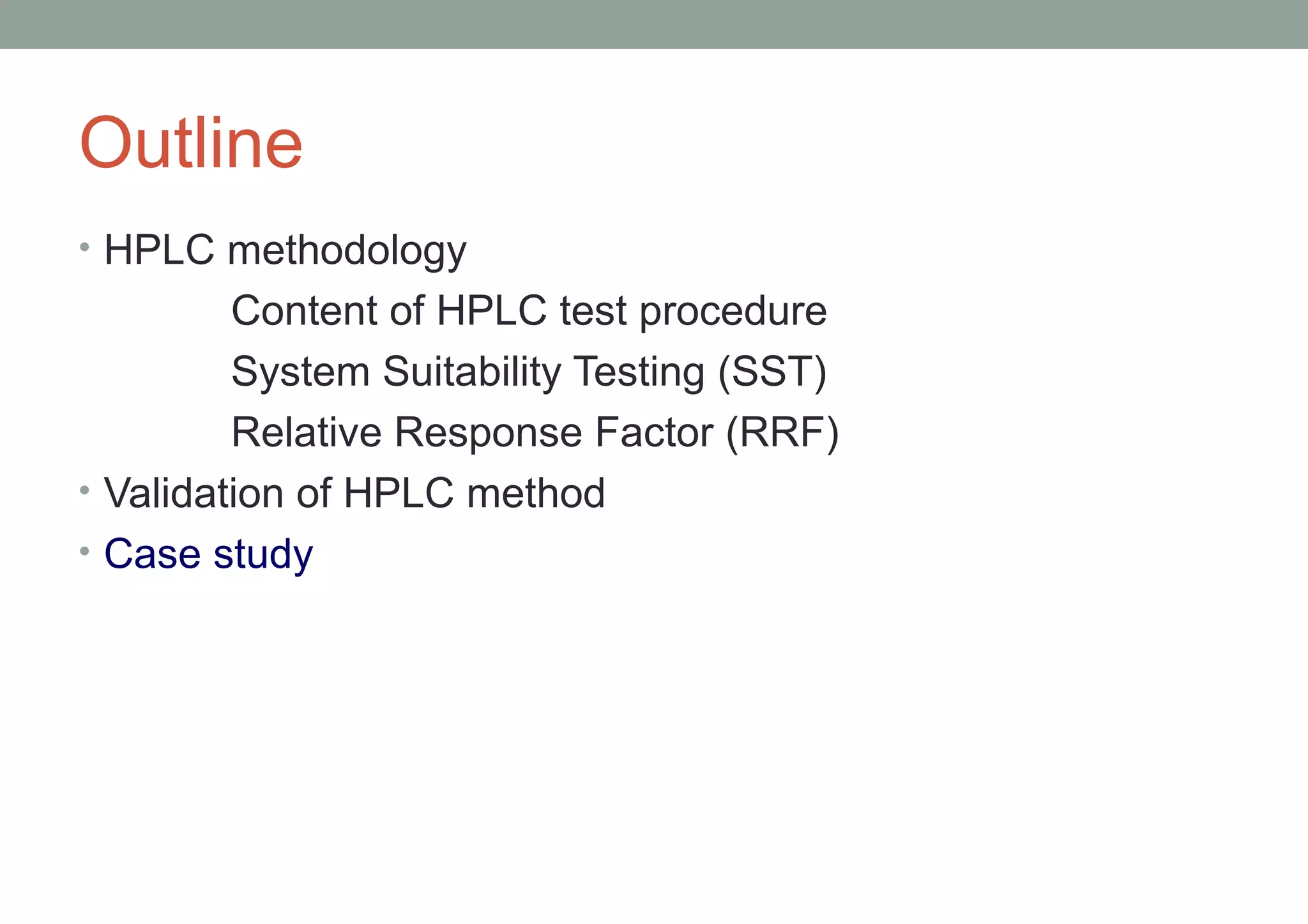 This document provides an overview of HPLC methodology and validation requirements. It discusses the key components of an HPLC test procedure including system suitability testing, relative response factors, and the validation parameters of specificity, linearity, accuracy, precision, LOD/LOQ, and robustness. Validation requirements depend on whether the method is compendial or non-compendial, with full validation needed for non-compendial methods. System suitability criteria and validation acceptance limits are outlined for various analytical techniques like assay, impurities testing, and dissolution.