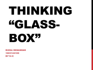 Metode perancangan 'glass-box' adalah pendekatan yang rasional dan sistematis dalam desain, memungkinkan analisis dan evaluasi yang mendalam sebelum menemukan solusi. Berbeda dengan metode tradisional, 'glass-box' memungkinkan penelusuran proses kreatif dan keputusan yang diambil. Karakteristik utamanya meliputi penentuan sasaran, variabel, dan kriteria yang jelas serta pendekatan analitis yang komprehensif.