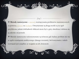 Metody numeryczne wykorzystywane są wówczas gdy badany problem nie ma