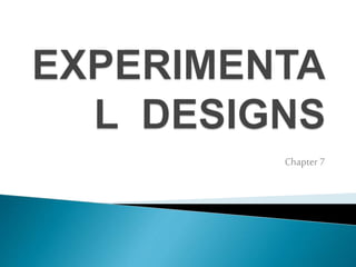 This document discusses factors that can threaten the internal and external validity of experimental research designs. It identifies six main threats to internal validity: history effects, maturation effects, instrumentation effects, selection bias, statistical regression, and mortality. It also discusses how randomization and matching groups can help control for contaminating variables. The trade-off between internal and external validity is addressed, as well as types of experimental designs, simulation as an alternative, and ethical issues.