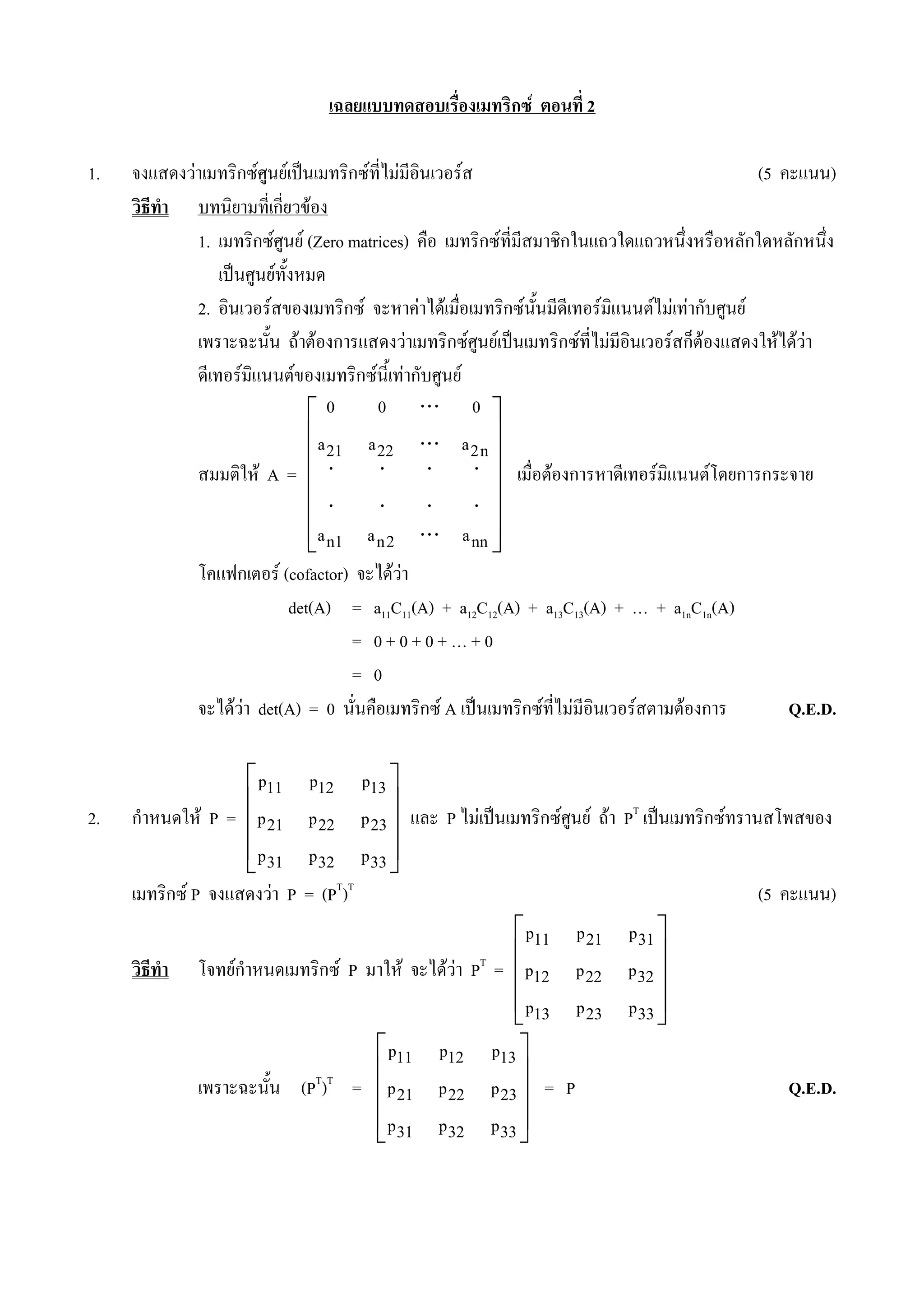 1) It defines zero matrices and shows that the determinant of a zero matrix is 0.