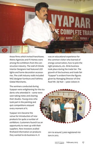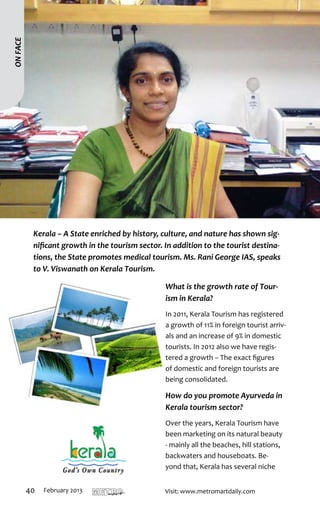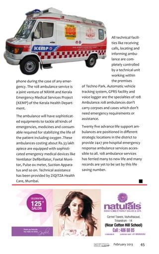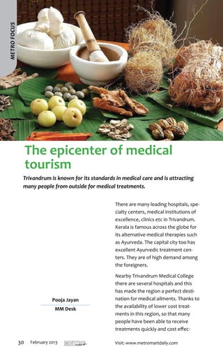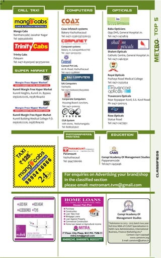 The document covers several notable events and businesses in Thiruvananthapuram, including the launch of Atlas's first showroom and their gold saving schemes aimed at protecting customers from rising prices. It also highlights the Kerala Institute of Tourism and Travel Studies (KITS) gaining affiliation from the World Tourism Organization, which will enhance its tourism education offerings. Additionally, Kunnil Margin Free Supermarket is presented as a prominent grocery shopping destination, emphasizing value for money through a margin-free concept and a wide range of products.