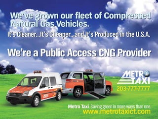 The document introduces a new wheelchair-accessible taxi service called MV-1 that provides on-demand transportation 24/7/365. The service uses certified and trained drivers and accepts major credit cards for payment. It highlights the business advantages in West Haven including being business friendly, using compressed natural gas fuel, and having strong demand responsive training including wheelchair-accessible taxicabs.