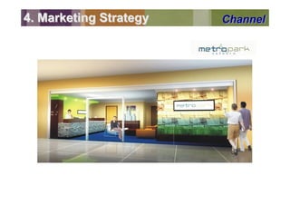 This document outlines the marketing strategy and implementation plan for a housing development project in Thailand. It includes details on marketing channels like trade shows. It allocates 3% of expected sales to the communication budget. The action plan schedules advertising, PR activities, and sales promotions from 2005-2006. It establishes controls for monitoring the plan and evaluating performance. Finally, it provides financial projections showing expected cash flows, profits, and returns.