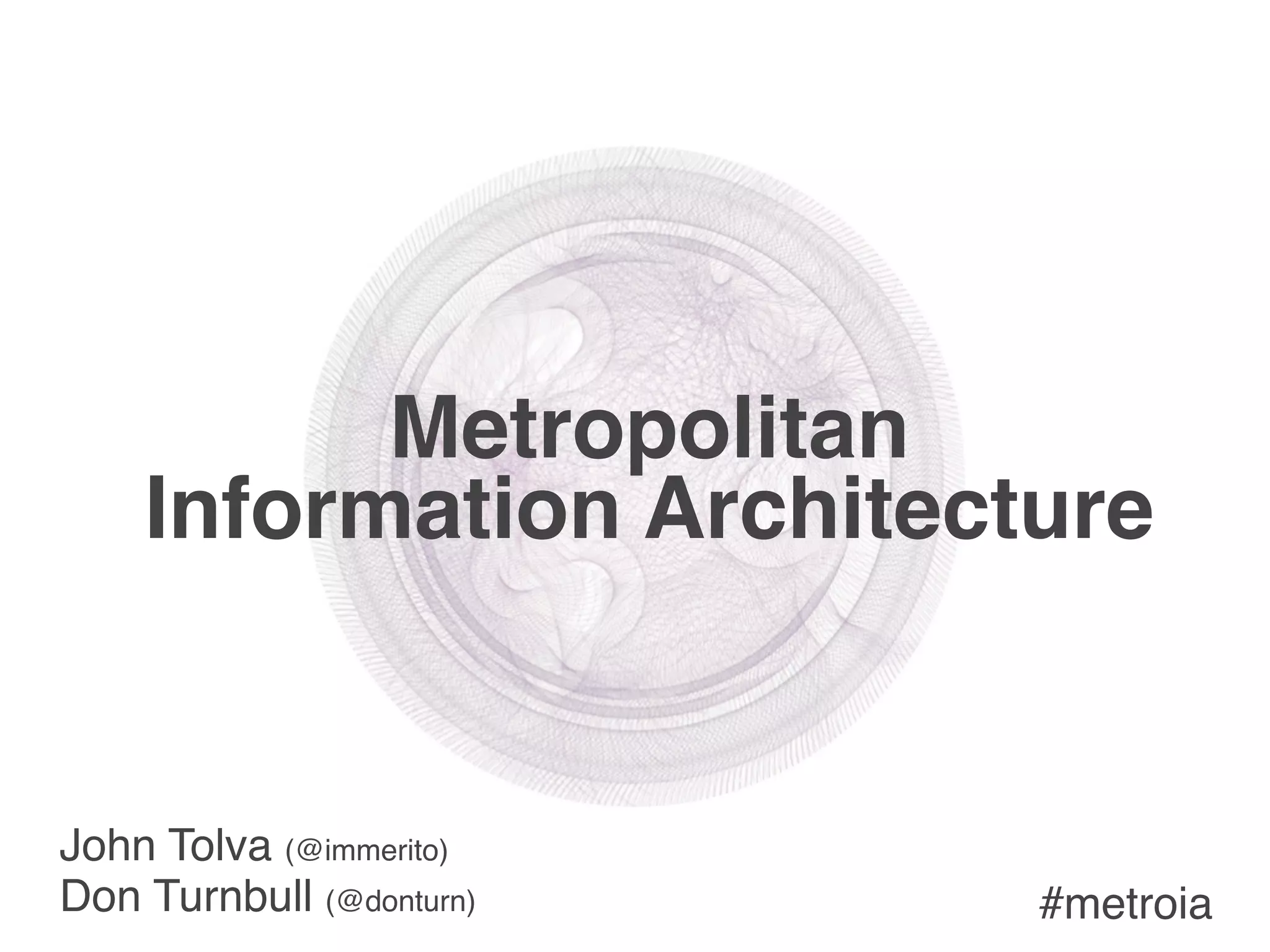 This document discusses the increasing urbanization of the world's population and the rise of "metropolitan information architecture." It notes that more than half the world's population now lives in cities, and this number is projected to rise to 70% by 2050. It argues that cities are increasingly defined by their information systems and digital infrastructure, and explores how to design cities that are shaped as much by their information architecture as their physical architecture.