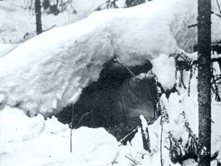 KARU Karu magabtalvel oma koopas. Ta lesib samblaga voodertatud oksakuhilal, katuseks lumehang. Iga läheneja või kahtlase krõbina peale keerab ta pead ja kuulatab. Kui keegi päris pesa lähedale juhtub, kargab ta tülitajale vastu. Unest üles aetud karu on kuri, sest ta on näljane. Emakarul sünnivad talvel pesas pojad, sageli kaksikud. Emakaru tukub istuli-küürakil ja soojendab poegi oma süles, nii saavad pojad ka kergemini süüa.