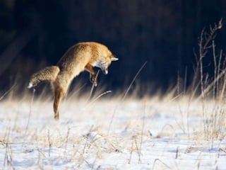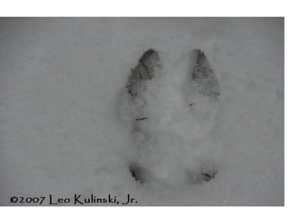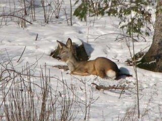 REBANE Kui osaloomi vahetab talvekarva selleks, et paremini end varjata, siis rebane saab pika ja koheva kasuka külma vastu. Talvel elab ta veekogude äärseis roostikes. Toitu jahib ta videvikus ja öösel, aga vahel ka päeval. Rebane on väga osav ja väle, ta hiilib ligi ja teeb kiire hüppe- nii püüab ta lume alt ka hiiri, kui kuuleb nende piiksumist. Kui saagiks langeb mõni suurem loom, peidab ta ülejäägi lumme kraabitud auku. Rebane pole kiire jooksja, eriti Talvel paksu lume sees. Talvel otsivad rebased ka kaaslase, kellega poegi saada - siis kostub metsas nende heledat klähvimist.