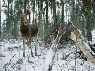 PÕDER Kuigi põderon meie metsade suurim loom, on ka tema elu talvel raske. Talvel liiguvad põdrad suurte, kuni kümnepealiste karjadena, otsides toitu terve päeva ja öö- ainult vahetevahel puhates. Toiduks on nii puude-põõsaste oksad kui ka koor, vahel kraabivad ka lume alt sammalt ja kulu. Toitumisel murravad noorte mändide jt. puude latvu. Magama heidab põder otse lumele ning tal on seal nõnda soe, et higistab lebamiskoha pruuniks. Metsas ei karda põder kedagi- kui hundid just karjana teda ei ründa.