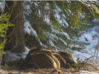 METSSIGA Nii nagukõigil metsloomadel, on ka metssigadel talvel elu raskem, kuna rohttaimede ja põõsaste puude juured on lume all. Seetõttu elutsevad nad talvel rohkem metsades, kus maapind on vähem külmunud ja lumikate õhem. Külmakaitseks on neil tihe karvkate ja paks nahaalune rasvakiht. Vahel ehitavad vanaloomad tihedate kuuskede alla okstest, kulust ja samblast pesi, kus nad tihedalt külg külje kõrval puhkavad peale toiduotsinguid.