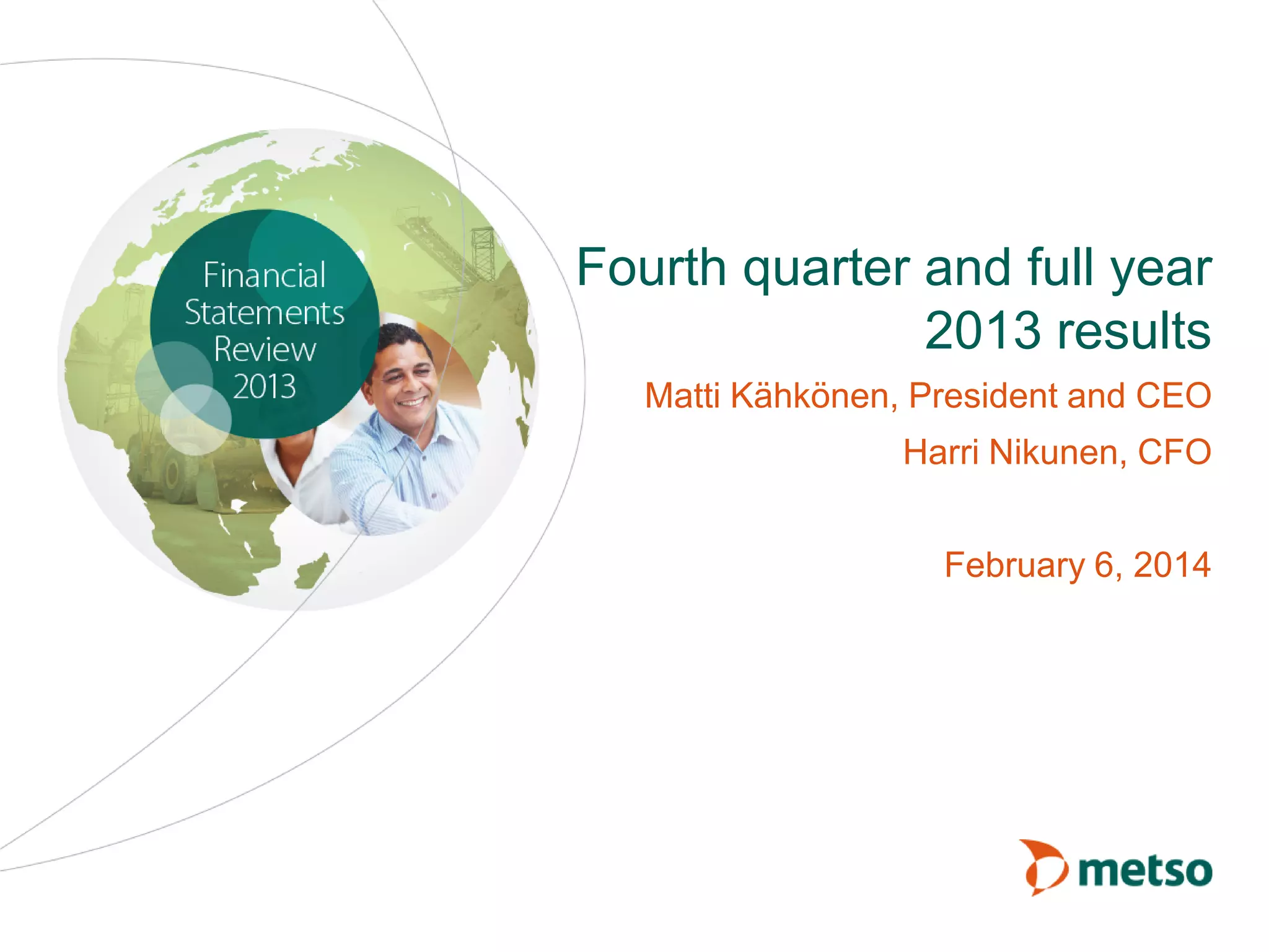 Metso reported its fourth quarter and full year 2013 results. Key highlights include: