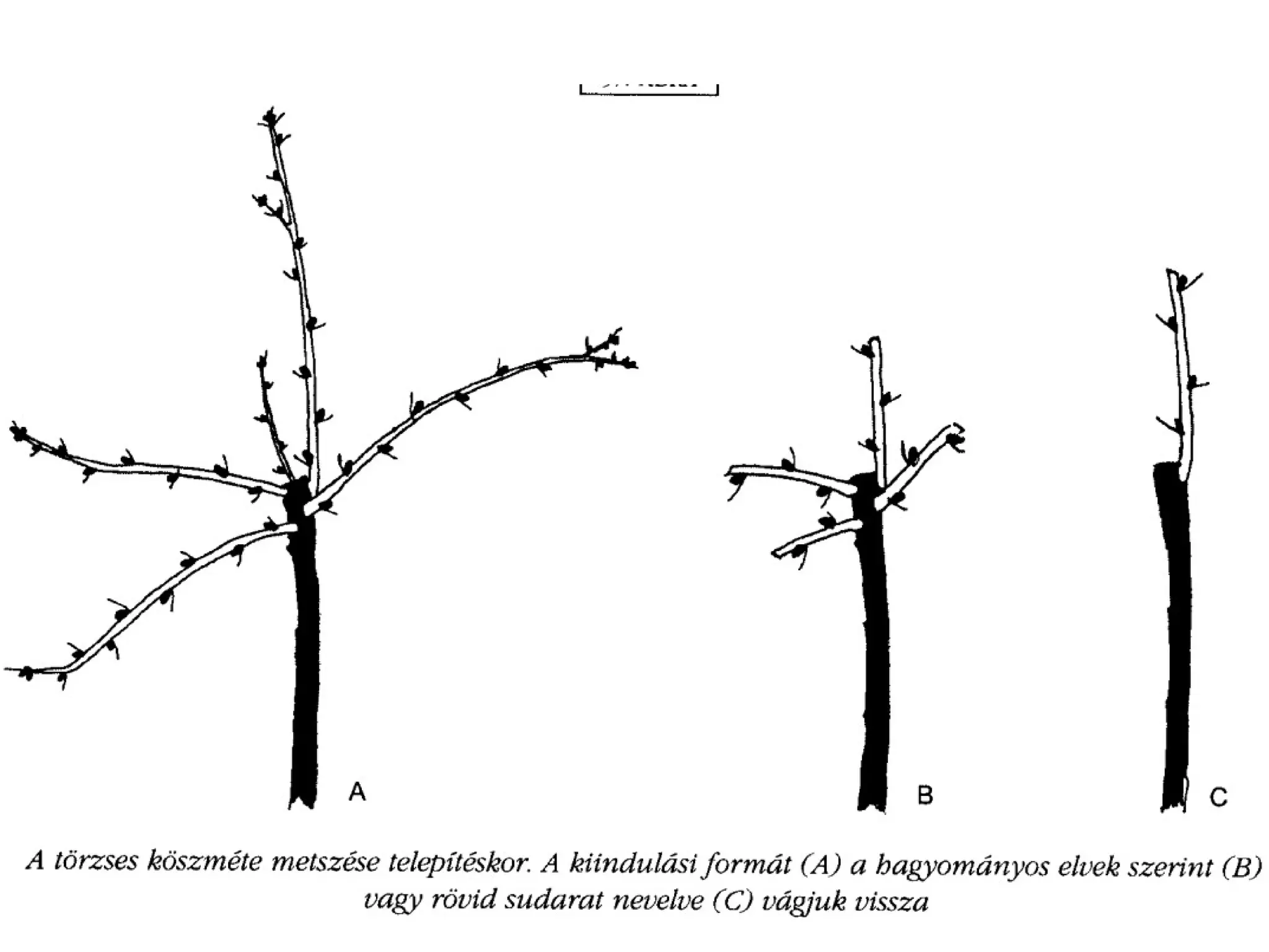 felfelé törő hajtást félfás metszéskor eltávolítjuk