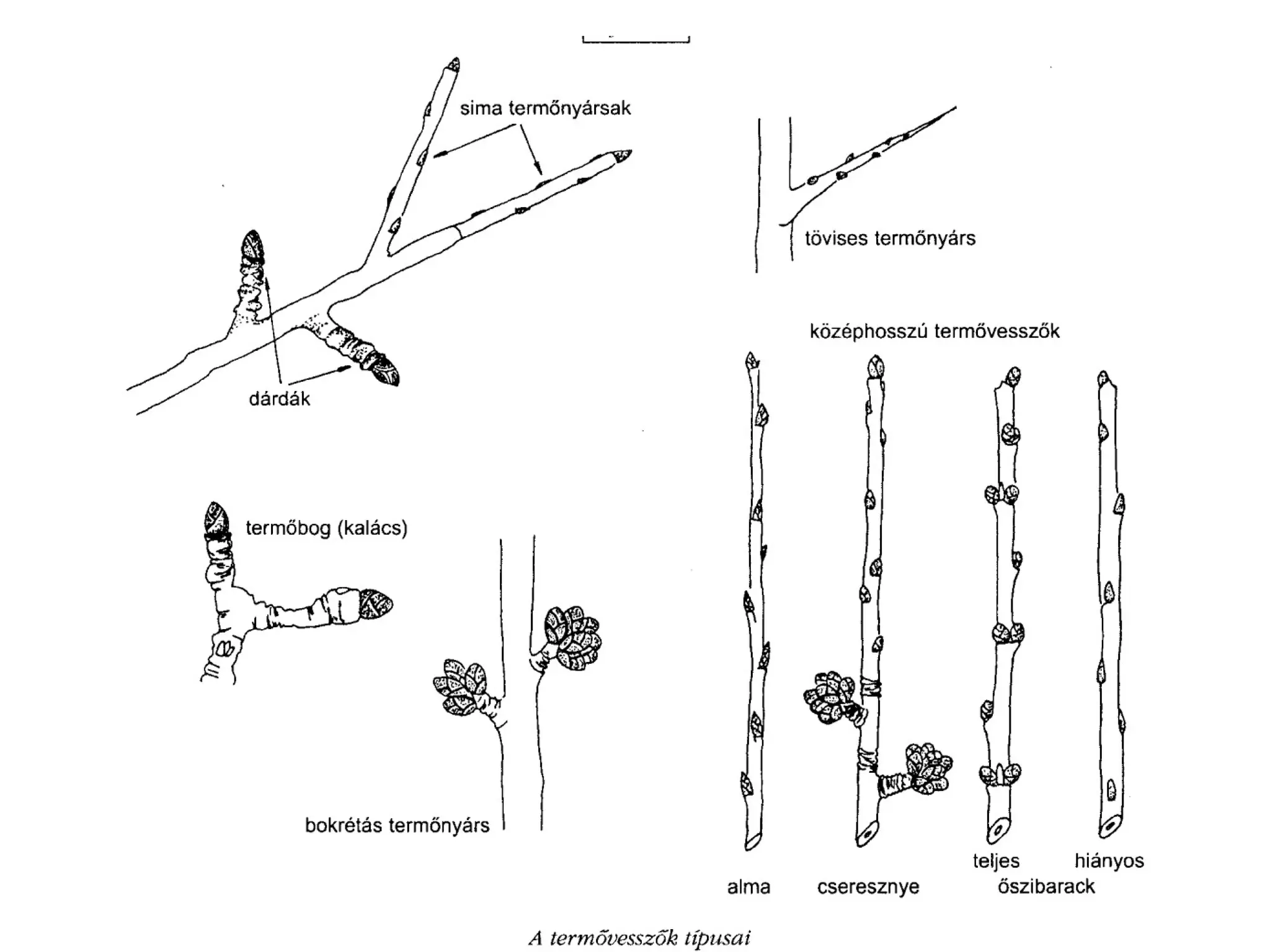 – Termőrészei az almafákéhoz hasonlóak, de az éves vesszőn