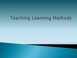 The document discusses various teaching and learning methods. It describes that learning is an individualized process influenced by intrinsic and extrinsic factors. The role of teachers is to facilitate learning through different methods like transmitting information, instructing, coaching, and facilitating problem-based or project-based learning. Some key teaching methods discussed include lectures, small group teaching, individualized teaching, and experiential teaching. Problem-based learning is described as a student-centered approach that uses clinical problems to stimulate self-directed learning.