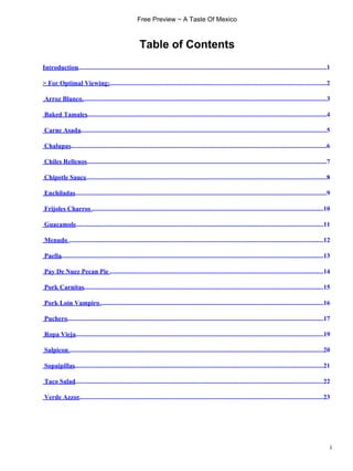 This document provides recipes from Mexican cuisine. It includes recipes for dishes like arroz blanco (white rice), baked tamales, carne asada (grilled steak), chalupas (fried corn tortillas), chiles rellenos (stuffed peppers), chipotle sauce, and enchiladas. The document contains over 20 recipes in total and provides instructions for preparing authentic Mexican foods.