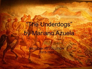 The book "The Underdogs" by Mariano Azuela tells the story of Demetrio Macias, a peasant who joins the revolutionaries after being forced to flee his home. Demetrio and his small group of 21 men engage in battles with the federal soldiers, managing to kill all the soldiers despite being outnumbered, though Demetrio is wounded. The book depicts Demetrio as both a brave and intelligent revolutionary leader, but also as a human with flaws as he pursues a young woman while married. The character of Anastasio Montanez, Demetrio's loyal friend, provides comic relief through his intellectual conversations, while the arrival of medical student Luis Cervantes proves important for caring for