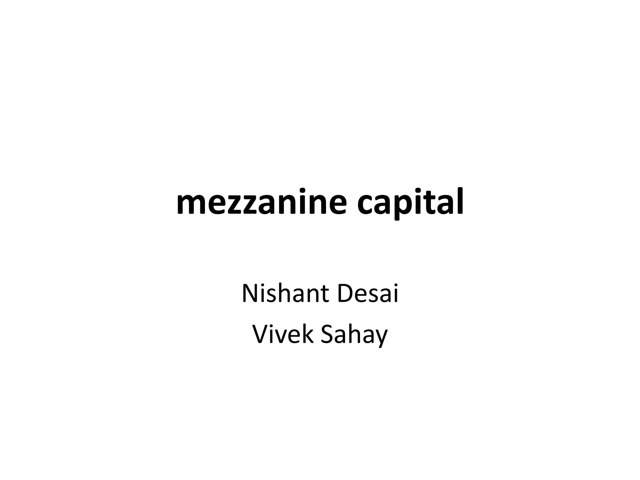 Mezzanine capital is a form of financing that ranks between debt and equity. It has characteristics of both, being senior to equity but junior to other debt. Mezzanine financing is often used in leveraged buyouts and real estate development to provide supplementary funding. It typically takes the form of subordinated loans with an interest payment as well as an equity kicker component like warrants, options, or profit sharing that provides an additional return. While offering flexibility, mezzanine financing also carries higher risk than senior debt.
