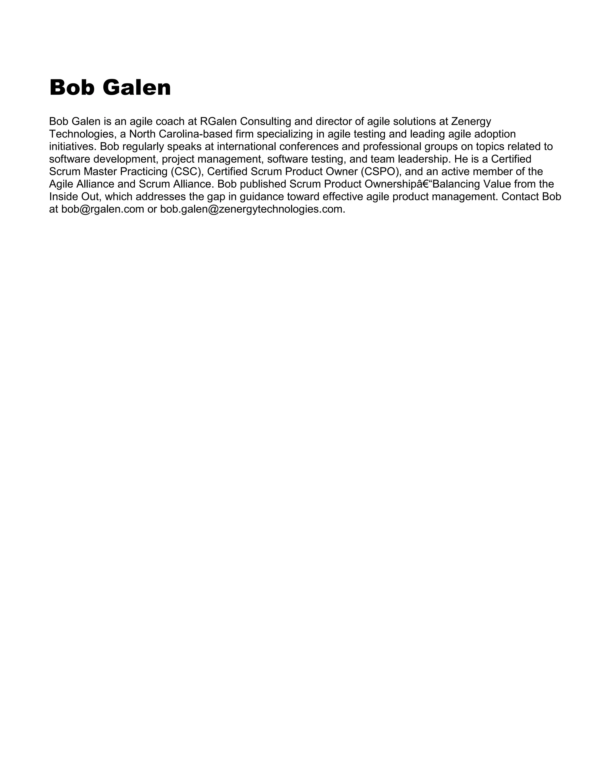 The document presents a tutorial by Bob Galen on navigating agile testing transitions, outlining various myths and realities related to agile testing methodologies. It emphasizes the importance of mixed skill sets within teams, the necessity of planning and automation, the roles of testers and developers, and the significance of continuous improvement and collaboration. The final sections advocate for adopting a comprehensive strategy involving risk-based testing and cross-functional practices to enhance quality in agile environments.