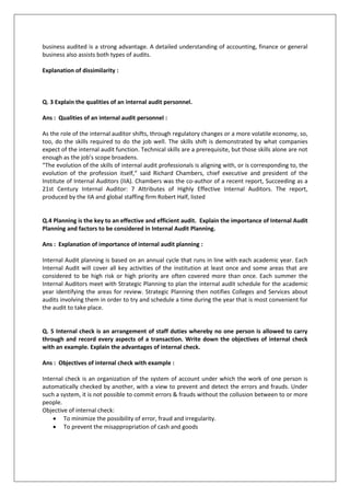 The document is an announcement regarding fully solved assignments for various MBA programs, detailing the process to obtain them via email or phone. It includes specific assignment questions related to auditing concepts, requiring detailed answers and explanations on topics such as general audits, internal audits, and internal control systems. The assignments emphasize the importance of effective auditing practices, required skills for auditors, and the role of internal checks in preventing errors and fraud.