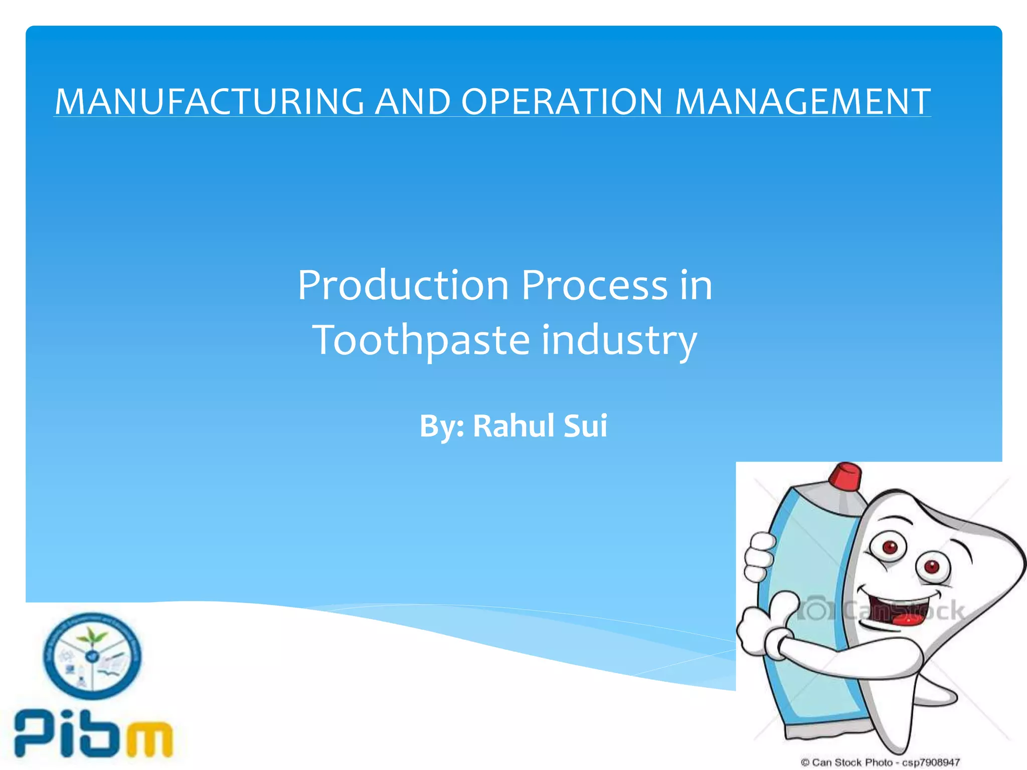 The production process of toothpaste involves mixing various ingredients like abrasives, binders, humectants, sweeteners, flavors, surfactants, and fluoride actives in precise quantities. The ingredients are mixed together and then the mixture is used to fill tubes through an automated filling and punching process. Once filled, the tubes are moved to a warehouse for storage before distribution. Mass production is employed to efficiently create large volumes of standardized toothpaste products on an assembly line.