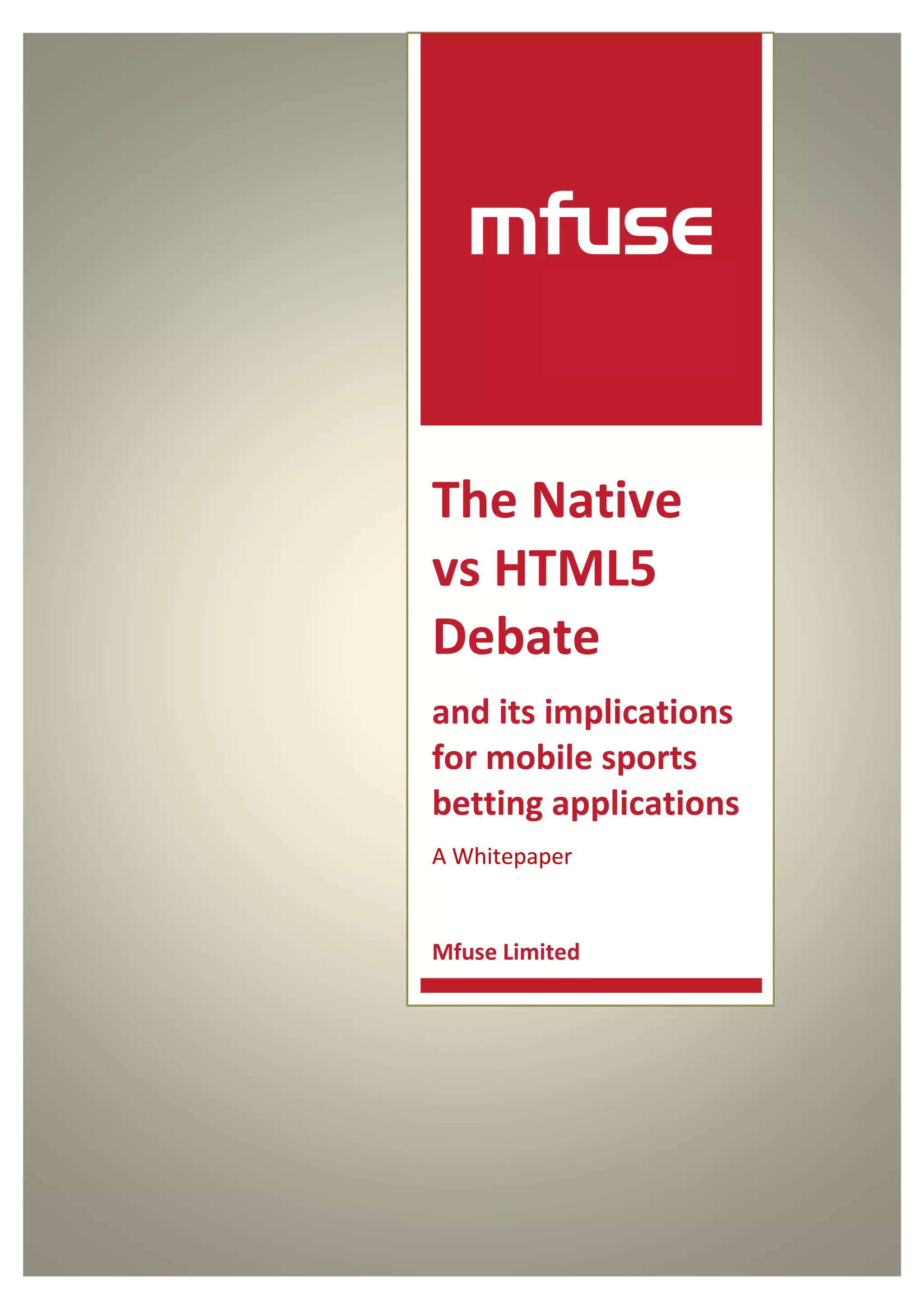 The document discusses the debate between developing mobile applications as native apps or browser-based HTML5 apps, noting that native apps have more functionality but higher costs while HTML5 aims for "write once, run anywhere" but has varying browser support; it reviews the pros and cons of each approach and examines the fragmentation of devices, browsers, and HTML5 feature support across platforms, concluding that true cross-platform support does not currently exist and multiple versions may still be needed.