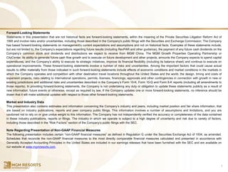 MGM Resorts International provided an investor presentation in March 2017. The presentation highlights that over the past 3 years, MGM has significantly improved its balance sheet through transactions like MGP and asset sales, initiated operational initiatives to grow profits, and pursued strategic growth opportunities. Looking forward, MGM plans to continue operational improvements, further strengthen its balance sheet, pursue strategic initiatives like developing MGM Cotai and MGM Springfield, and increase shareholder value.