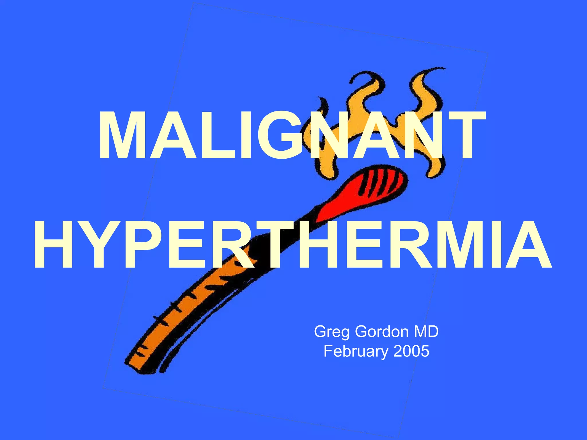 The document discusses malignant hyperthermia (MH), a potentially life-threatening condition triggered by certain anesthetic gases and the muscle relaxant succinylcholine. It provides details on the pathophysiology, clinical presentation, diagnosis, and treatment of MH. It emphasizes being prepared to treat MH by avoiding triggers, having dantrolene available, and monitoring for signs of the condition during medical procedures.