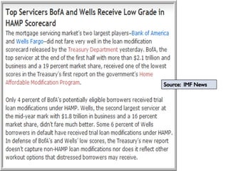 The document provides an overview and update on the Making Home Affordable Plan. It discusses that through August 2009, over 570,000 homeowners have received loan modifications through the Home Affordable Modification Program. However, the House Financial Services Committee wants to see more conversions of trial modifications by November 1st. It also outlines recent program updates, participation from large servicers, documentation requirements, and eligibility criteria to provide context on the plan from a housing counselor's perspective.