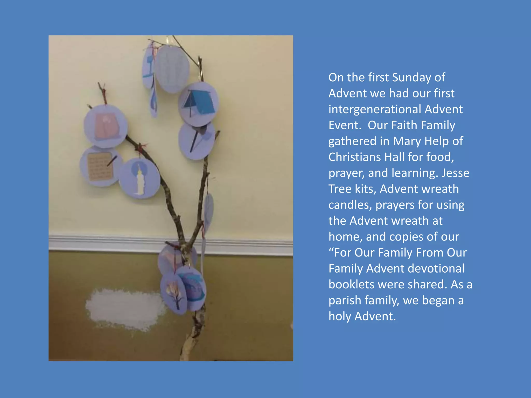 On the first Sunday of Advent, the parish gathered for an intergenerational event to kick off the Advent season. They shared food, prayer, Advent wreath materials and Jesse Tree kits to use at home, and an Advent devotional booklet. This helped the parish family begin the holy season of Advent together.