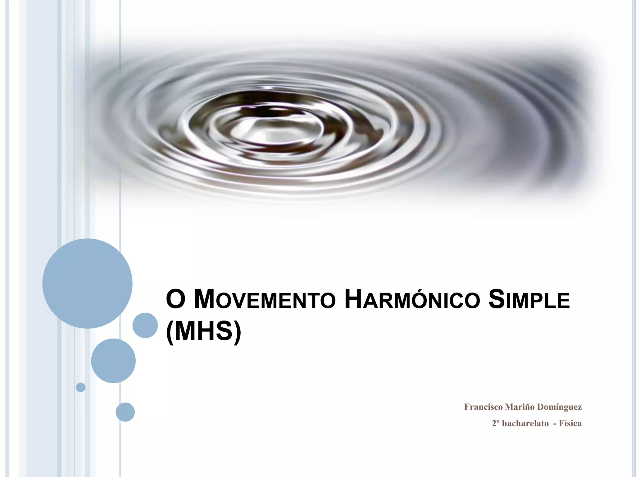 Entendemos por movementoharmónico simple (MHS) , aquel movemento oscilatorio que se despraza de un lado a ao outro da súa posición de equilibrio a intervalos regularesMHS