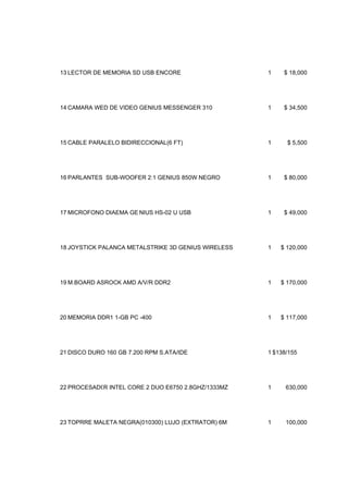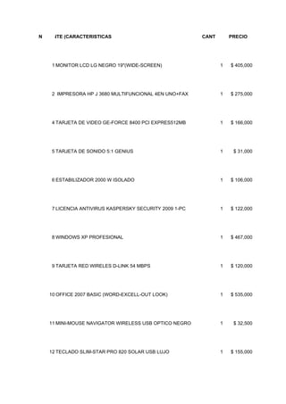 1 MONITOR LCD LG NEGRO 19"(WIDE-SCREEN) 1 $ 405,000