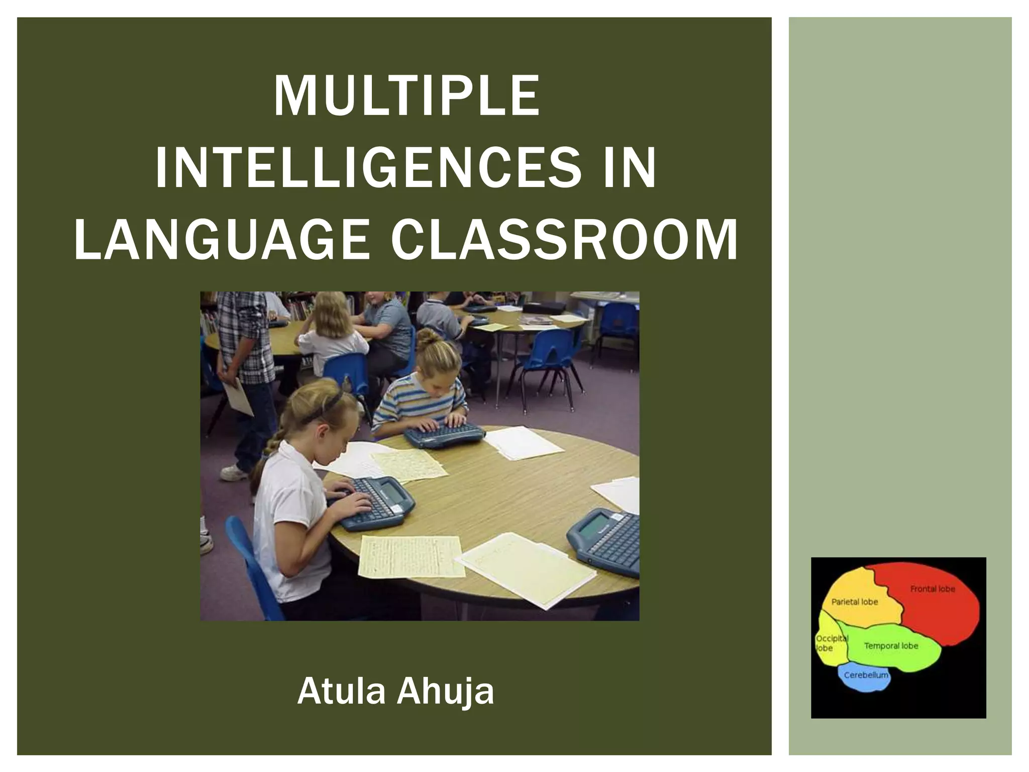 The document discusses the application of Howard Gardner's theory of multiple intelligences to language classrooms. It provides background on the original theory from 1983 and how it has developed since, being applied to general education starting in 1993. Key aspects discussed include the eight core intelligences, various researchers and scholars who have contributed to applying and developing the theory for classrooms, and specific strategies for using the different intelligences to enhance language abilities. The conclusion is that the theory acknowledges learner differences and provides diverse activities to engage all students, potentially leading to greater achievement.
