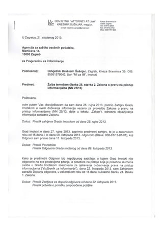 MI za IM vs. Grad, o pravu javnosti na pristup informacijama i obvezi grada da bitnosti ažurira na svojim službenim stranicama, dobila je ozbiljnije obrise. Naš član i odvjetnik Krešimir Šušnjar poslao je žalbu Agenciji za zaštitu osobnih podataka: