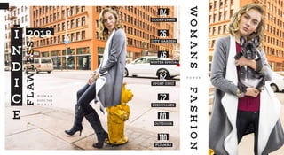This document showcases women's clothing items from a store called Mia Store. It features photos and descriptions of blouses, dresses, pants, sweaters and jackets in various styles and colors for the winter season. The items are presented with an emphasis on feminine, elegant and trendy looks that highlight a woman's figure and personality. Prices are listed in Peruvian currency along with product codes for each item.