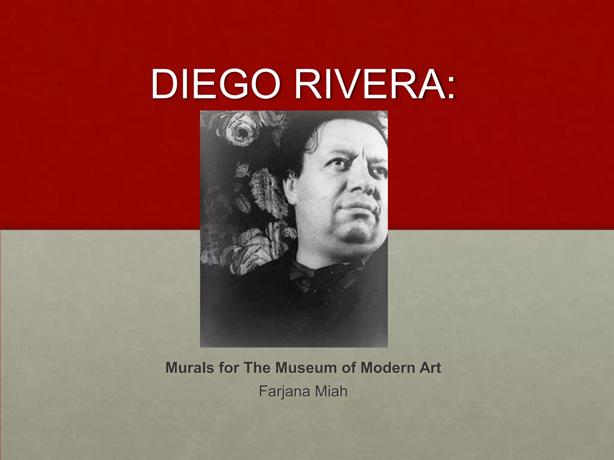 Diego Rivera was a Mexican muralist born in 1886 who was influenced by cubism and post-impressionism during trips to Europe. In 1931, Rivera was commissioned by the Museum of Modern Art in New York to create portable murals and additional wall paintings using New York subjects. The themes of Rivera's murals for MoMA revolved around social revolution, inequality, and the working class conditions during the Great Depression. Some of the murals Rivera created for MoMA included Indian Warrior, Agrarian Leader Zapata, Uprising, and Man at the Crossroads.