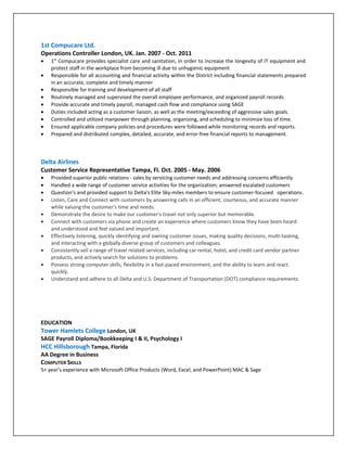 Mia Moore has over 10 years of experience in operations management, administrative support, customer service, and public relations. She currently works as an Inside Sales Representative for Coca-Cola, where she provides exemplary customer service and uses consultative selling skills to increase sales. Previously, she worked as an Operations Controller for 1st Compucare Ltd, where she was responsible for financial reporting and managing employees. She also has experience working in customer service roles for Delta Airlines. Mia Moore holds an Associate's degree in Business and certifications in Sage Payroll and Bookkeeping.