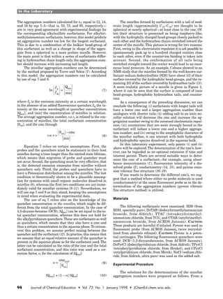 This document summarizes an experiment performed with students to determine micellar aggregation numbers of various ionic surfactants. The experiment introduces key concepts about micelle formation such as how increasing surfactant concentration or adding salt can decrease the critical micelle concentration and increase the aggregation number. Students determine aggregation numbers using a fluorescence quenching method and analyze how numbers change with hydrocarbon chain length and added salt. The results provide insight into the factors that influence micelle formation.