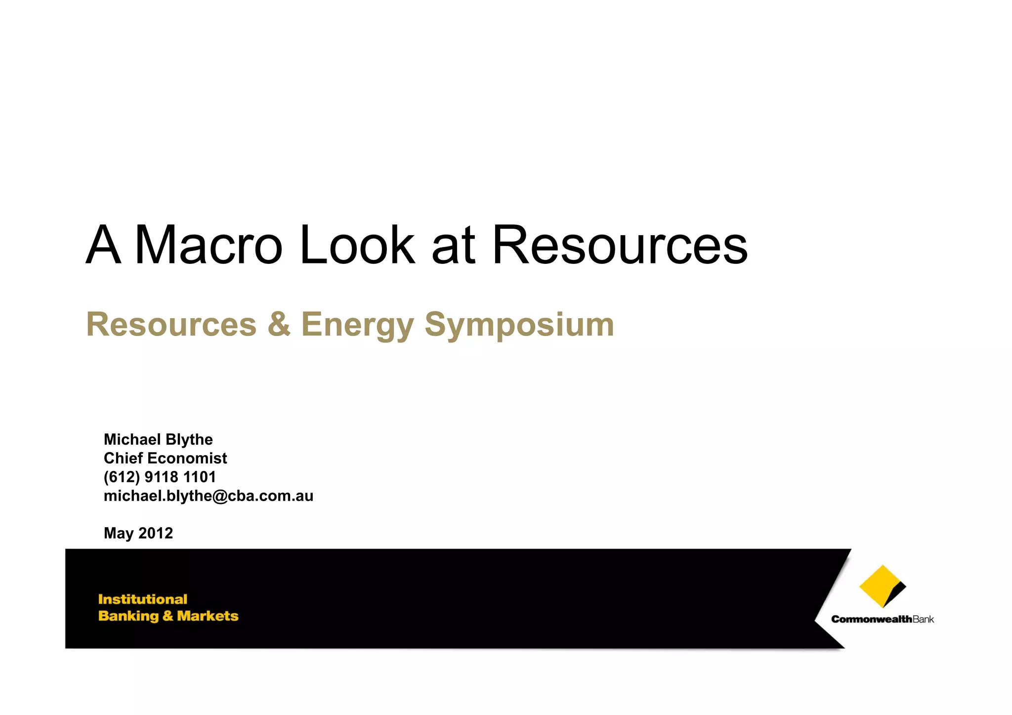 The document discusses the Australian economy's performance, particularly in relation to global commodity markets and the influence of China. It highlights the impacts of high commodity prices on income and economic growth, alongside concerns about a high Australian dollar and its effects on various sectors. The piece concludes with insights on household sentiments regarding resource benefits and economic forecasts moving forward.