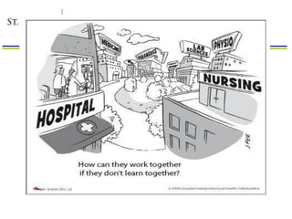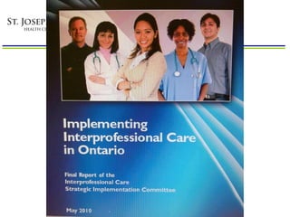 This document discusses interprofessional collaboration (IPC) and provides examples from St. Joseph's Health Centre of how IPC has been implemented. Some key points: