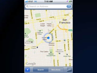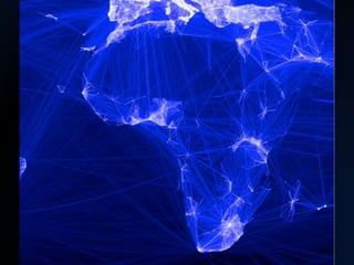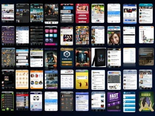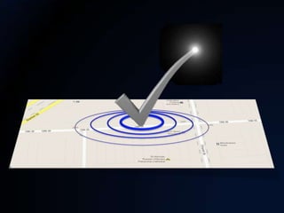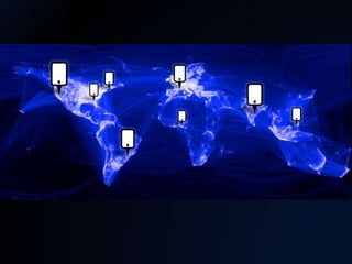 The document presents an overview of spatial networking, focusing on aspects like location, timing, and user interests. It discusses various applications and platforms facilitating real-time communication and collaboration among users in proximity, emphasizing the growth of smartphones and user behavior trends. Key statistics and projections about device sales and user acceptance of mobile technology are included.