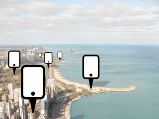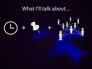The document discusses the evolution and significance of spatial networking, highlighting its role in real-time communication, collaboration, and media sharing among users in close proximity. It also addresses various challenges in the field, including achieving critical mass, platform diversity, monetization, and privacy concerns. Through historical context and data projections, it emphasizes the growing importance of mobile devices and user engagement in shaping the future of social interactions.