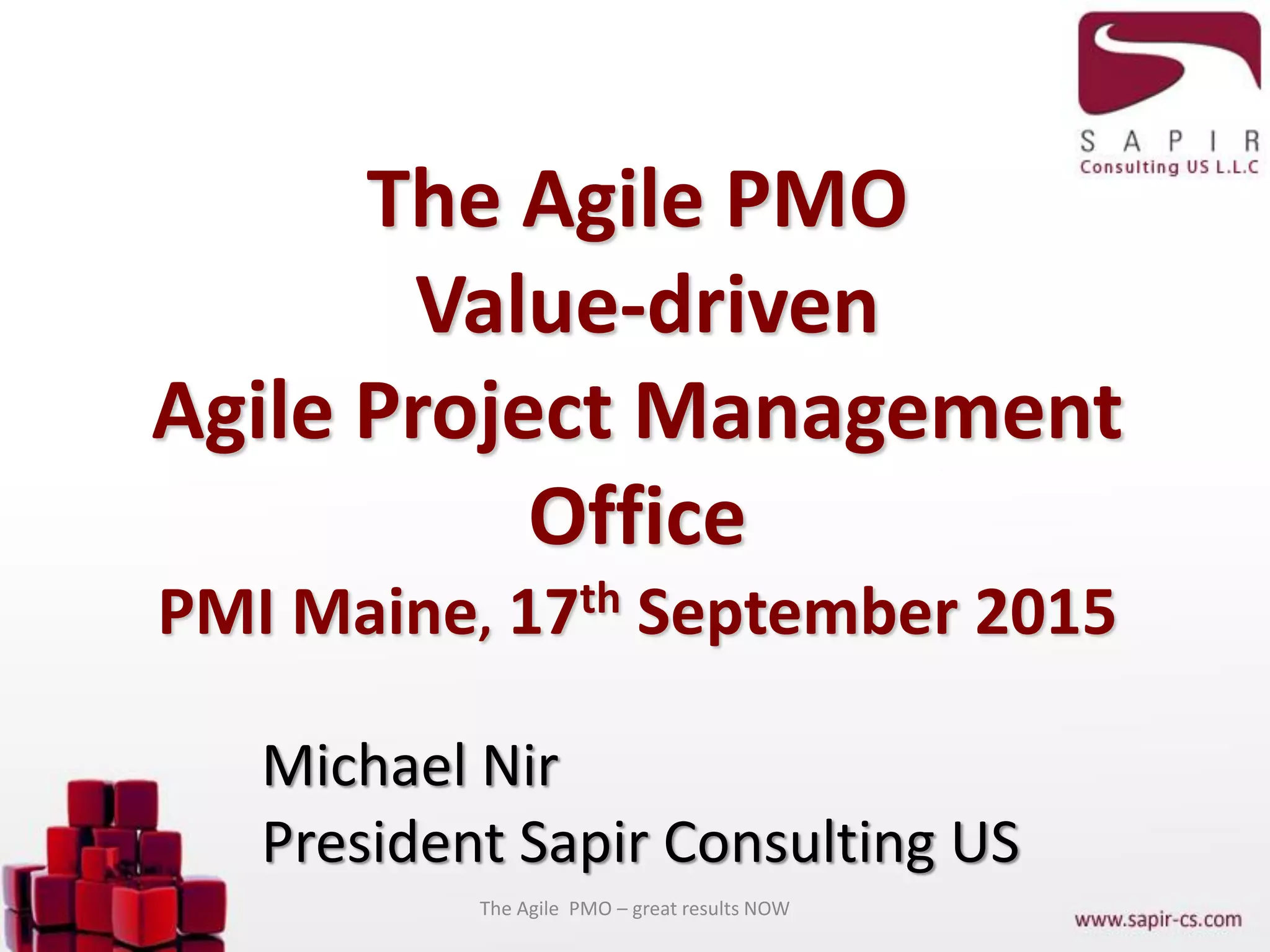 The document discusses the concept of an Agile Project Management Office (PMO) and its role in delivering value through effective project prioritization, resource allocation, and waste reduction. It highlights common challenges faced by traditional PMOs, including a perceived lack of value and the risks of bureaucratic processes. The presentation advocates for a shift towards agile leadership and management practices that focus on collaboration and self-management to enhance project outcomes.