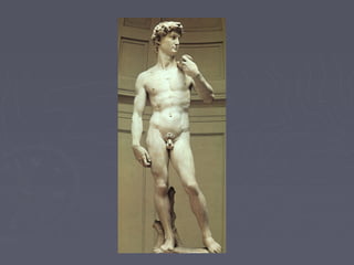 Michelangelo was an Italian sculptor, painter, architect and poet considered one of the greatest artists of the European Renaissance. He created famous works like the statue of David and frescoes on the ceiling of the Sistine Chapel. Throughout his long career he was employed by powerful patrons like the Medicis and the Popes, creating monumental sculptures and architectural works for the Catholic Church like the dome of St. Peter's Basilica in Rome. Michelangelo had an immense influence on other Renaissance artists and changed the course of painting in the West with his masterful depictions of the human form.