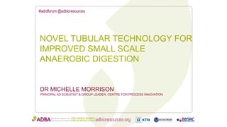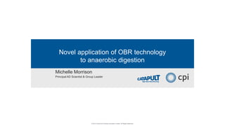 Michelle Morrison presented on a study comparing a novel tubular anaerobic digestion technology called OBR to a conventional STR design. The study co-digested dairy slurry and glycerol. The OBR was able to successfully digest this mixture and achieved a 28% higher methane yield than the STR under optimal conditions. Continuous agitation improved yields in both systems up to a point, while decreasing retention time had a negative effect. The OBR was more stable but required more energy for temperature control and pumping than the STR. Overall, the OBR performed well and has potential for small-scale anaerobic digestion applications.