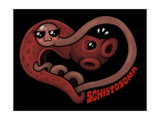 Schistosomes are trematode parasites that infect humans and animals. They have separate sexes unlike other trematodes. The eggs of different Schistosome species vary in their morphology and location. S. haematobium eggs are large and contain a spine, found in urine. S. japonicum eggs are oval with a knob, sometimes found in the brain or heart. The parasites' life cycles involve an intermediate snail host. Adult worms live in veins and deposition of eggs causes pathology. Symptoms depend on the species and location of eggs.