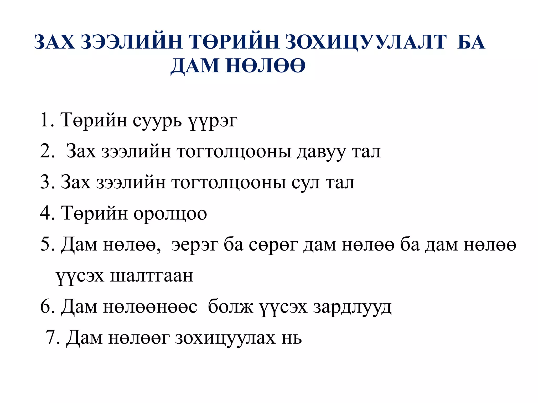 ЗАХ ЗЭЭЛИЙН ТӨРИЙНЗОХИЦУУЛАЛТ БА