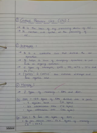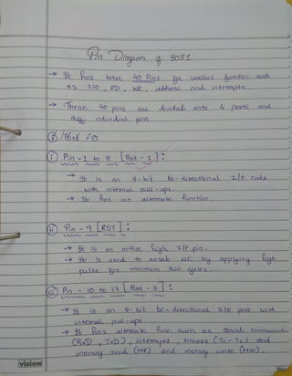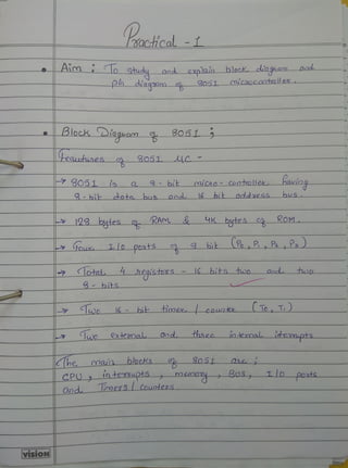 The document outlines a series of experiments and implementations related to the 8051 microcontroller, covering topics such as block diagram studies, programming in Keil μVision IDE, data transfer, and real-time applications. It includes detailed instructions for code development, interfacing with LCDs and seven-segment displays, and various programming techniques. The information is part of a project submitted for evaluation within a Microprocessor and Microcontroller course in May 2021.
