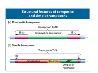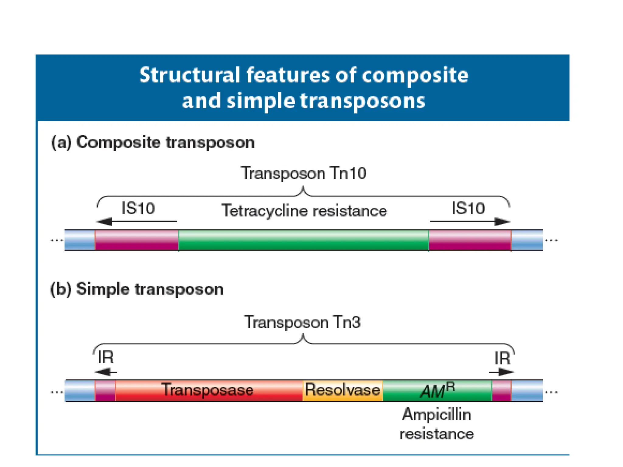 • Tn3 is 5 kb with 38-bp ITRs and includes 3 genes; bla (-lactamase), tnpA