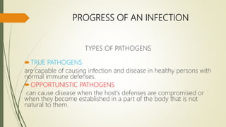 The document discusses microbe-human interactions, outlining types of pathogens, stages of infection, and mechanisms of disease. It details the characteristics of various infections, virulence factors, and the host's defense mechanisms while also covering the epidemiology of diseases and Koch's postulates for determining causative agents. Furthermore, it highlights the significance of understanding the routes of infection acquisition and types of carriers in controlling disease spread.